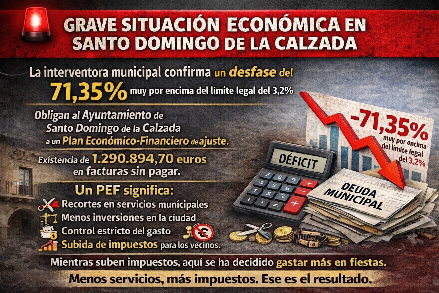 Una decisión que mantiene cerrada desde agosto de 2022, la principal arteria de la ciudad, la calle Mayor, eje del Casco Antiguo y tramo del Camino de Santiago, con el consiguiente perjuicio para vecinos, comerciantes, peregrinos y para la imagen turística de Santo Domingo de la Calzada. Han pasado más de tres años y medio desde que el Ayuntamiento decretó la ejecución subsidiaria en agosto de 2022, sin que hasta la fecha se haya ejecutado ni una sola obra, demostrando una incapacidad absoluta de gestión y una alarmante falta de voluntad política.
